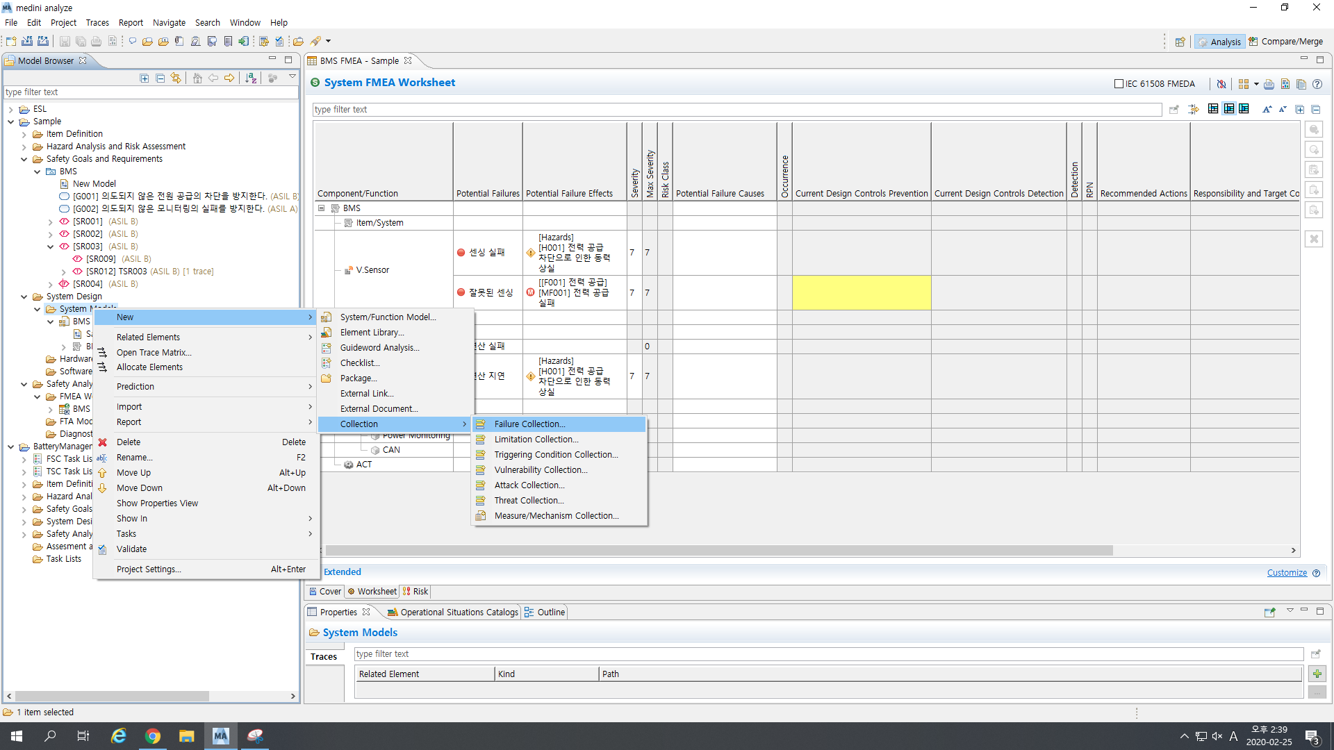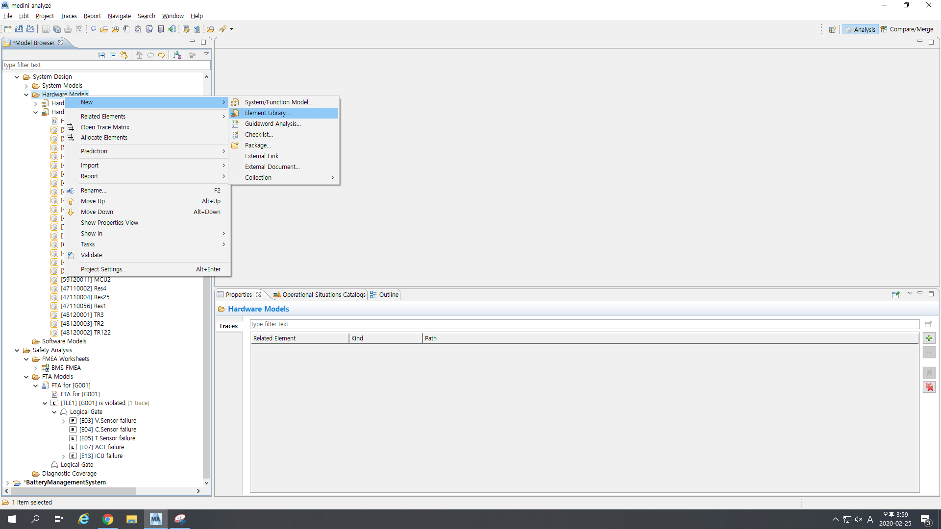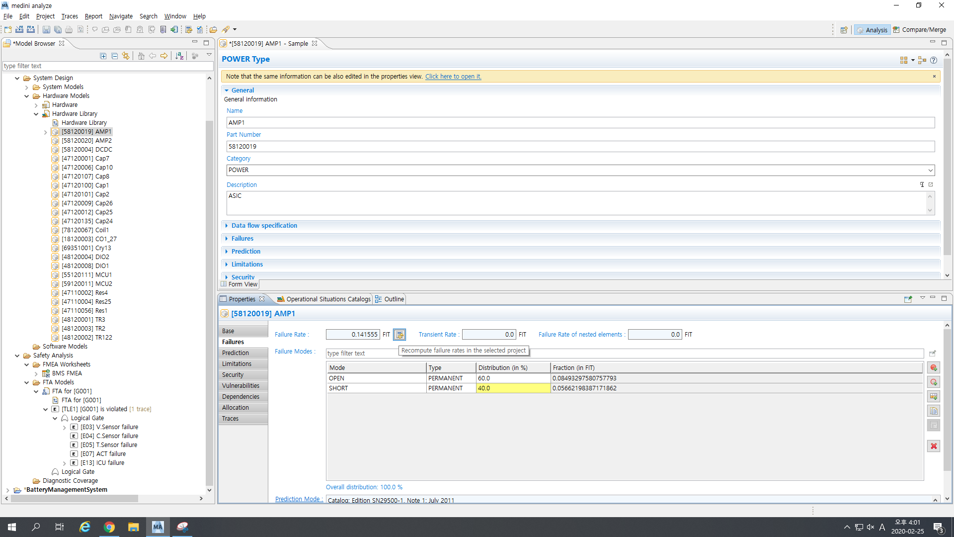 모든 하드웨어에 대한 정보 입력을 마친 후, 하드웨어에 대한 FTA를 수행한다.