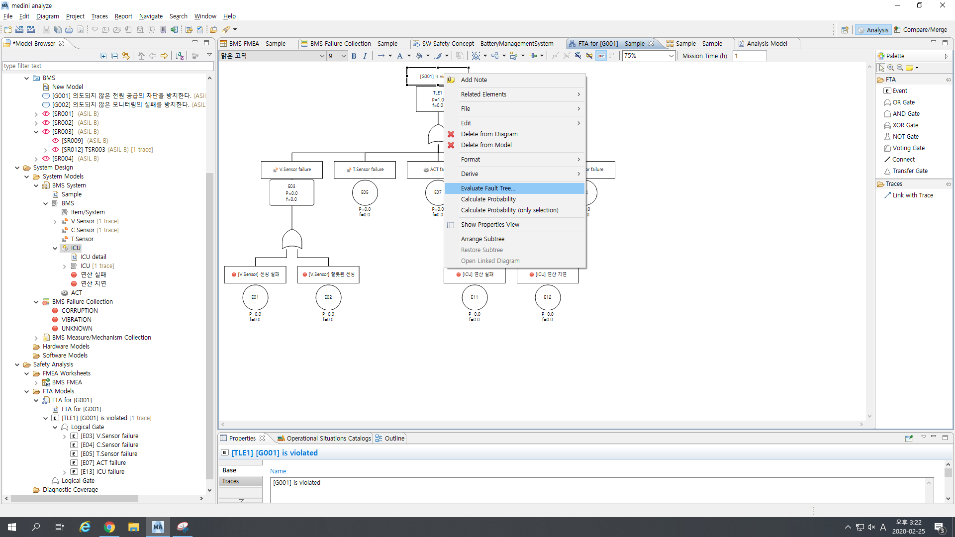 Evaluate Fault Tree를 통해 Single/Mulit Point Fault를 확인할 수 있다.